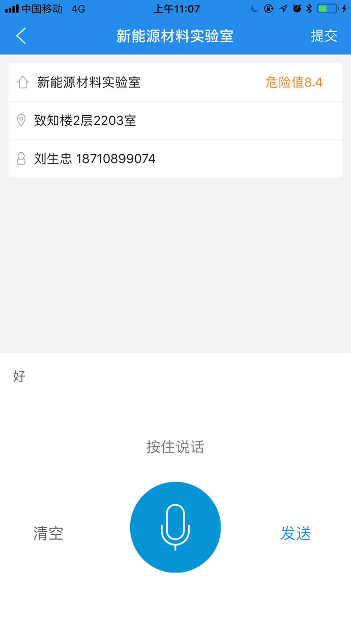 实验室巡检是一款在智能手机上使用的巡检工具,广泛应用于各个高校的实验室巡检工作领域中,摒除了传统巡检工作中的各种弊端,操作简单,易于上手,高效智能,无需辅助硬件设备,使用手机扫码即可完成巡检工作,同时记录人员所在位置,有效监督人员巡检情况,避免漏检,错检等情况的发生,巡检情况支持图片,语音,文字等多种方式展现,真实反映实际状况。及时发现、上报、解决问题,保障实验室环境,资产安全