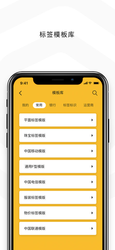 3、共享模版:将自定义标签模板上传到云目录,便可与他人分享,也可从app自带的必印模版库中选择合适模版,按需求修改,更快捷、方便;