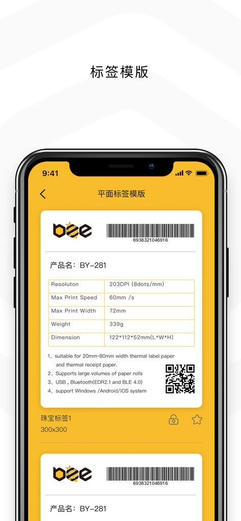 1、自定义标签:创作自定义标签样式,可以随意修改标签大小、背景图片、标签内容等;2、极速蓝牙打印:通过BLE蓝牙连接,快速连接打印机,实现单份或多份打印;