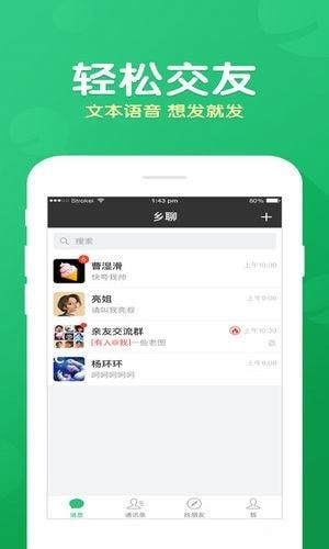 1、乡聊是一款为共同兴趣爱好的用户打造聊天交友工具。2、在乡聊中,你可以找到有相同兴趣爱好的朋友,也可以与朋友组成新的兴趣部落,共同探讨大家共同的爱好。创建或加入高质量的同好社群,分享大家关注的兴趣点,讨论热点兴趣话题,让沟通从此更顺畅。让分享为你带来更多的视角与新的价值。