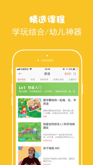 1、课程多:英语童谣、Phonics、中英文故事、宝宝情商训练系列、家长成长系列、诗歌国语、艺术启蒙等等,统统可以在家玩、在家学。2、上手快:深奥复杂的亲子理论游戏化、实例化,APP上手简单易用,家长使用课程的难度很小。