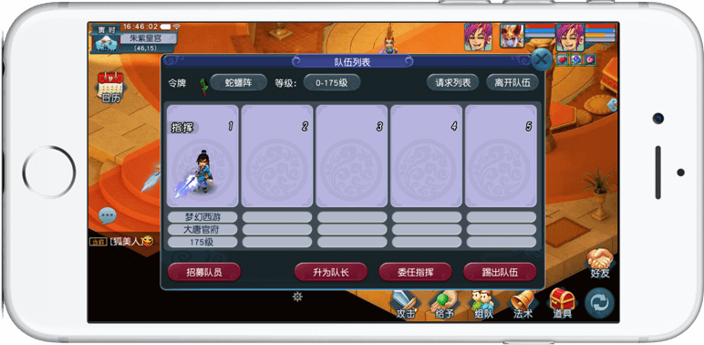 组成队伍后,在队伍列表界面,可以进行队长人选、队员位置、委任指挥和踢出队伍等操作