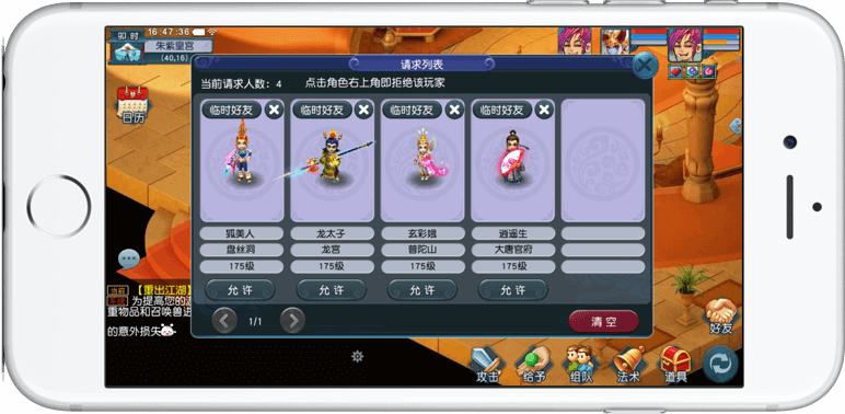 在请求列表,可看到申请加入队伍的玩家信息,互通版中可直接对单个玩家点击“允许”入队或点击右上角X图标拒绝其请求