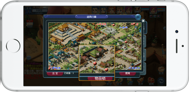 由于手机屏幕有限,为了方便玩家点击,互通版游戏面画右下角的功能键都做了适当的放大,以便达到一目了然和准确选择的效果。同时,功能键图标在保持电脑版原本造型的前提下,对细节进行了优化,包括阴影、色调等方面都做了不同程度的调整。