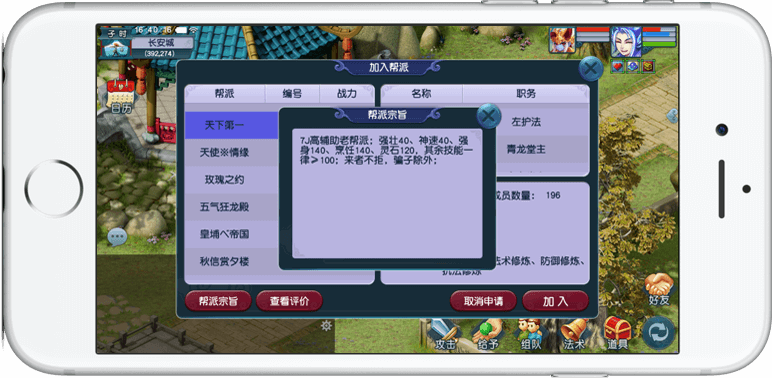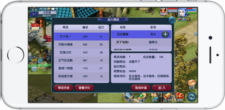 点击想要加入的帮派可查看帮派评价,帮助玩家从侧面了解该帮派