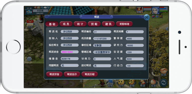 加入帮派后,玩家可点击右下角的“帮派”按钮查看帮派具体情况