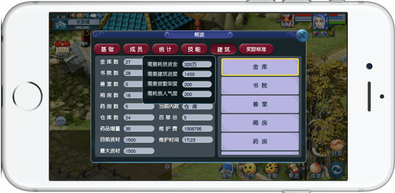 在“建筑”处玩家可以了解到当前帮派建筑的建设情况