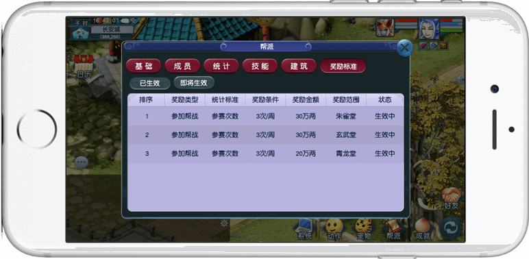 玩家可在“奖励标准”中查看参与指定帮派活动的奖励详情