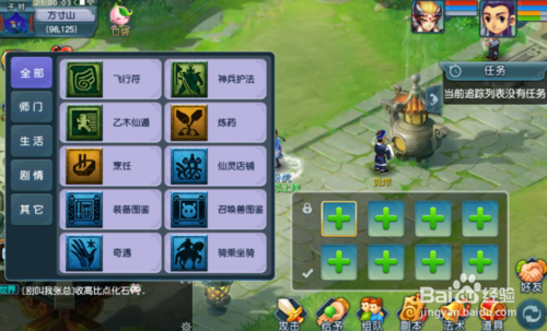 首先可以设置一些快捷键,例如回师门,点击游戏中“法术”按钮,点击左侧下方设置小图标后,点击“+”图标,进入技能和生活、剧情技能等界面,找到自己需要设置的技能后,点击左侧下方“√”图标,就可以了。