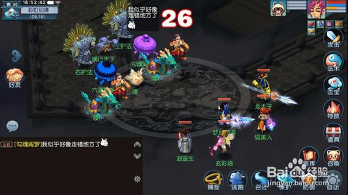 互通版的战斗界面与电脑版在大布局上是一致的。第一,右上角人物的气血、魔法值、怒气值条都基本一致,在色彩显示上更为清新明亮。第二,各类BUFF所显示的位置依然在人物头像之下。第三,主要的战斗操作键依然分布在屏幕右侧。