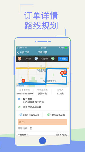 2.配送员可根据订单距离自己目前所在位置的远近和订单可获得的利益,来决定是否抢单。