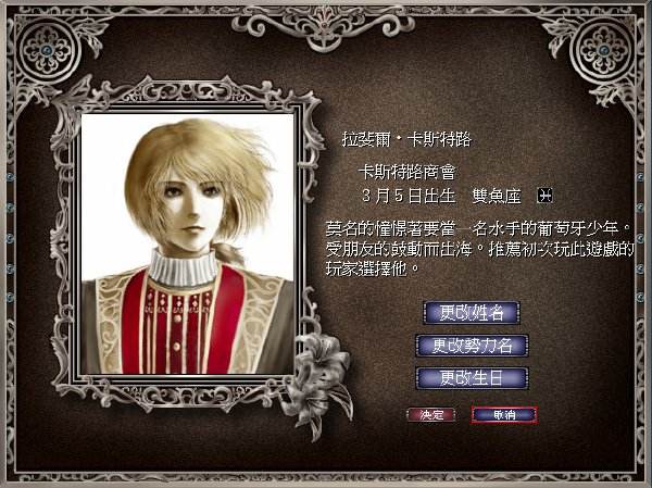 拉斐尔.卡斯特路:卡斯特路商会向往成为海员的葡萄牙少年,经朋友怂恿而决定出海,适合游戏的初学者。