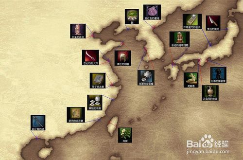 在东亚,到澳门后有人告诉我泉州有人找我。到泉州,一个奇怪的老人告诉我霸者之证的地图在杭州的遗迹里,到杭州的遗迹得到唐代的竹艺品。消灭来岛后在京城李家的人给我竹艺品的组合说明书,在京城的酒馆得到东亚霸者之证的地图。
