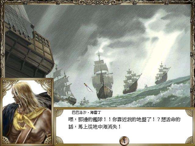 到地中海,在里斯本决定与巴鲁迪斯决战,国王召见,告诉我集齐七个霸者之证葡萄牙即可独立。到塞尔维亚与西班牙贵族冲突,约定海上见。出港即交战(此仗非常难打,前后共有四支舰队,建议先存档),胜之得画有图案的布。