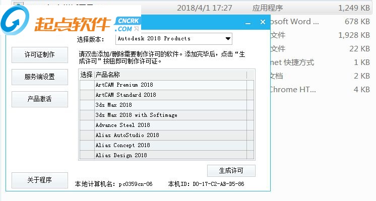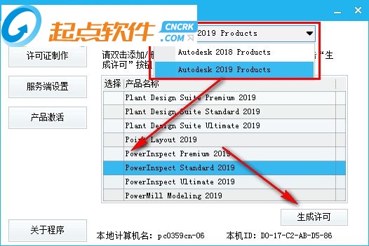 5、对版本进行选择,产品的名称进行选择,点击即可生成许可;