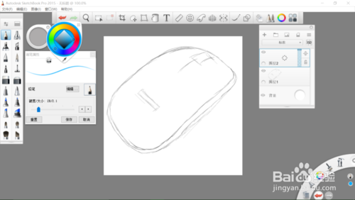 照片照出来的颜色和直接在sketchbook中看到的有色差。而且环境比较暗,所以照出来的鼠标比较暗,而Surface pro中明亮度却似乎比肉眼直接看的更加饱和。