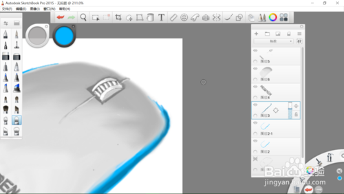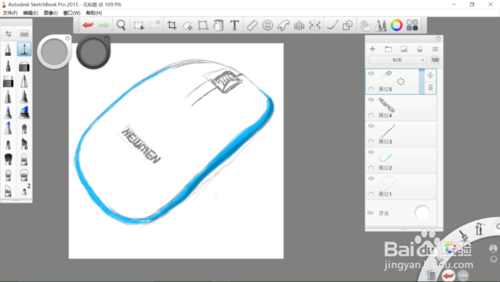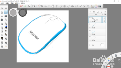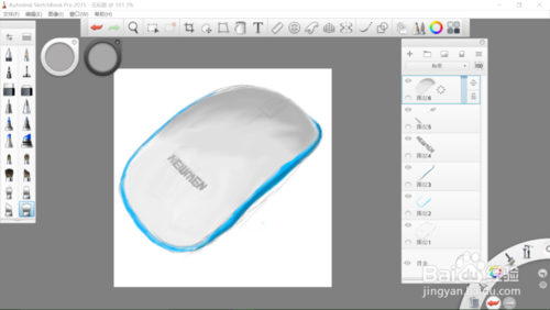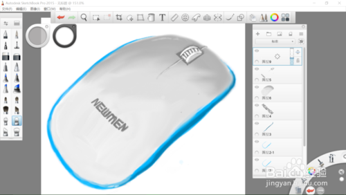 现在我们有了草图作为参考,大概位置是可以确定的了,像鼠标的LOGO、左键、右键以及中间键等。