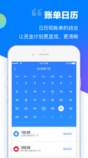 3、账单日历:日历和帐单的结合,让资金计划更直观、更清晰