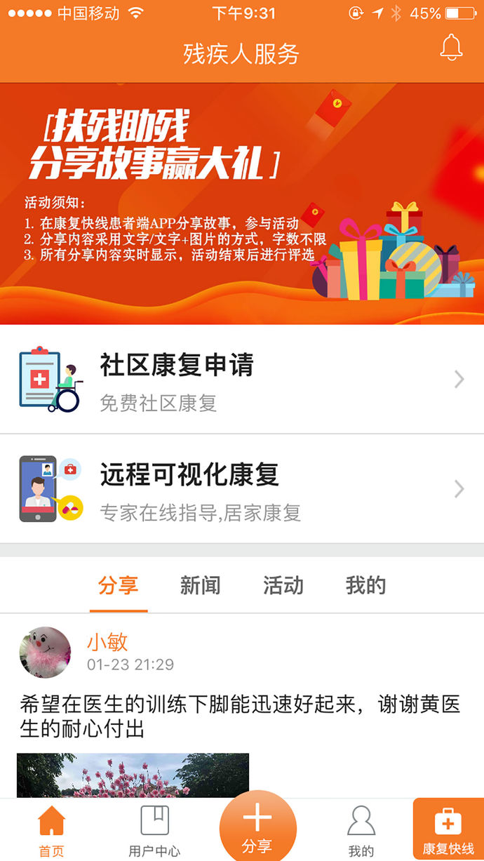 康复快线app是一款非常实用的健康医疗应用软件,康复快线苹果版为用户打造一个远程医疗的平台,让用户在家就能得到最专业的问诊结果。还为用户普及各种健康知识,让你能够认识到预防疾病的重要性,从而降低得病的概率。