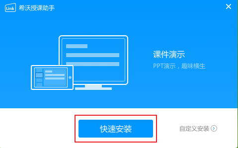 1.双击打开希沃授课助手电脑版,点击快速安装