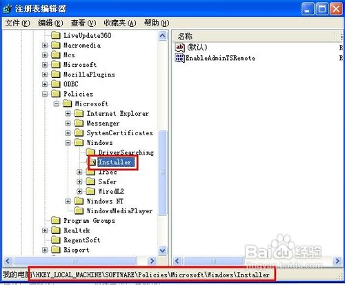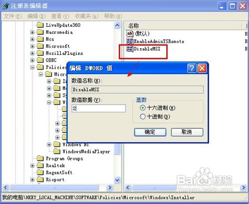 依次展开HKEY_LOCAL_MACHINE\ Software\ Policies\Microsoft\Windows\Installer