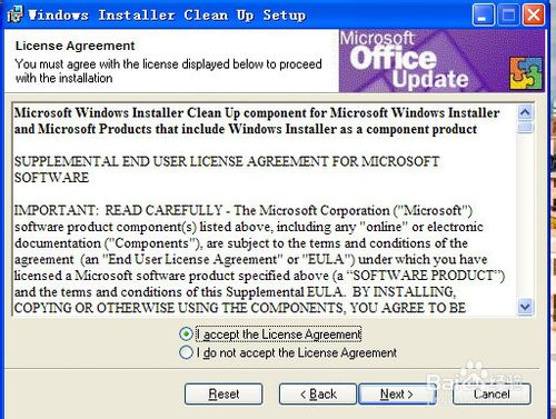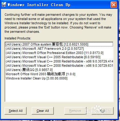 有时以上方法解决不了的话,较为万能的方法是上网下载个WindowsInstallerClean软件。这款软件能够清除电脑上的INSTALLER信息,清除完后就能解决该问题了,如图。