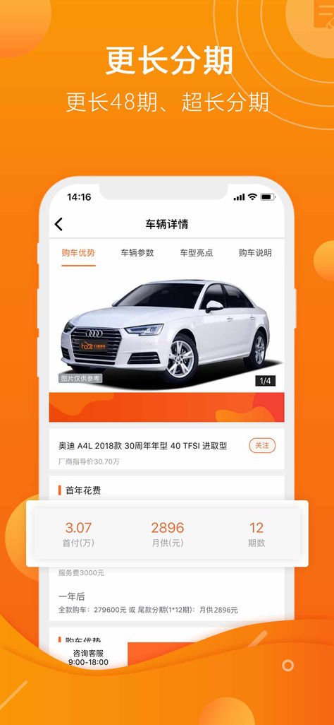 不高。51惠享车产品是最低零首付,并将上牌杂费、购置税、保险、GPS等所有费用都融到贷款额内,最大限度的降低购车门槛的极致购车方案,而且为了降低还款压力,产品的最长周期有4年。首付低、融资额高,周期长。一年以后还有尾款优惠活动。与线下对比,我们尽可能让利于客户。