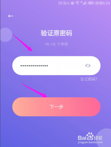 点开【修改密码】后,验证下【原密码】,点【下一步】,如图。