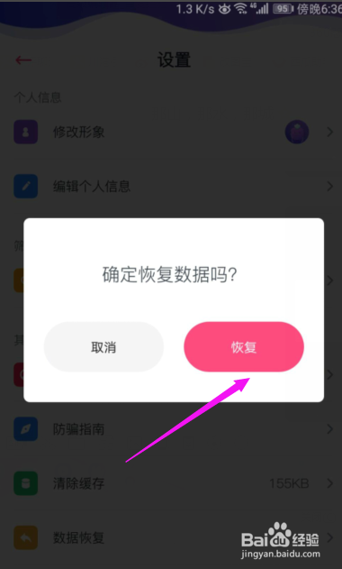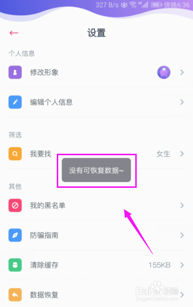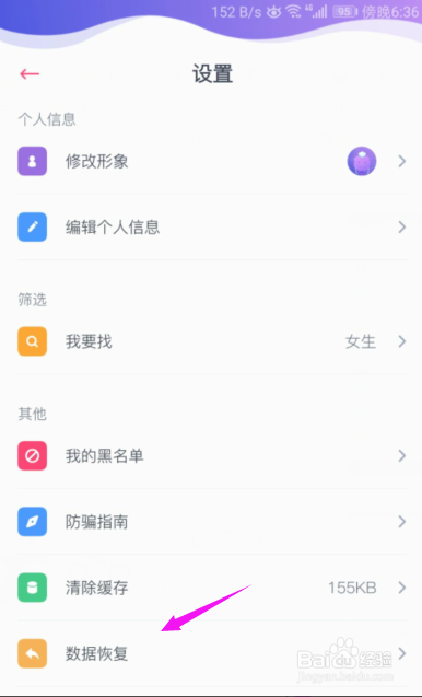 右上的【设置】点碰开,我们就选择下【数据恢复】,如图。