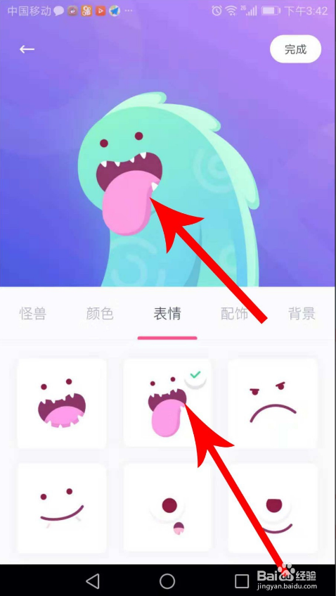 点击“表情”分类,这里共有6种表情可选,点击后怪物头像表情就会更换