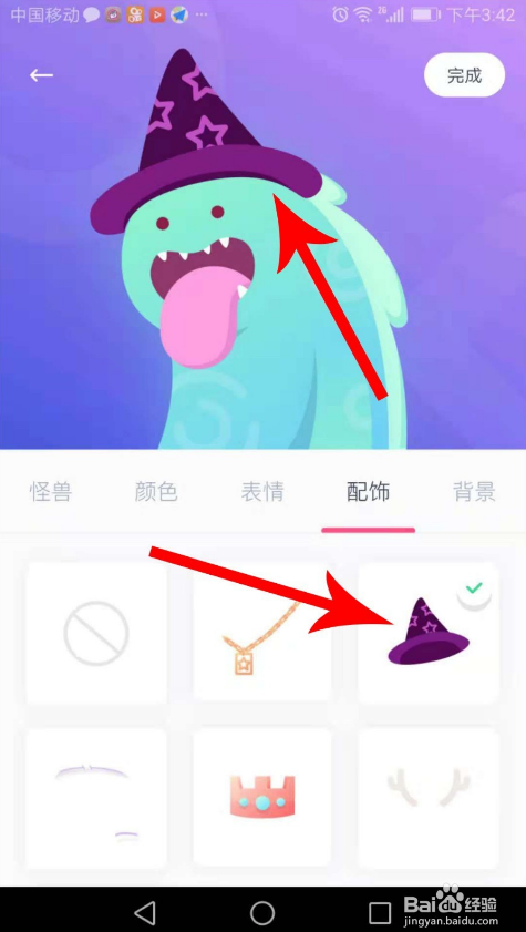 点击“装饰”分类,这里有帽子、项链等6种装饰品可选,点击后怪物头像就会增加此装饰物