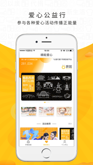 完成回收后可获得噢啦豆奖励,用于兑换来自公益机构的爱心礼物以及支持公益爱心项目