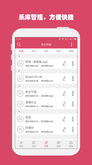 音乐剪辑是一款功能强大、操作简单的音频剪辑制作软件,可以轻松的将手机中的MP3歌曲将自己想要的片段剪切出来,对于铃声制作、音频合成都是不错的选择。