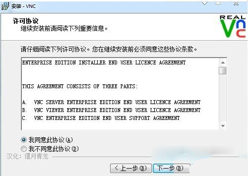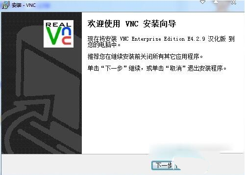 1、首先电脑上需要安装VNC服务端。双击下载下来的安装程序出现安装界面,点击下一步