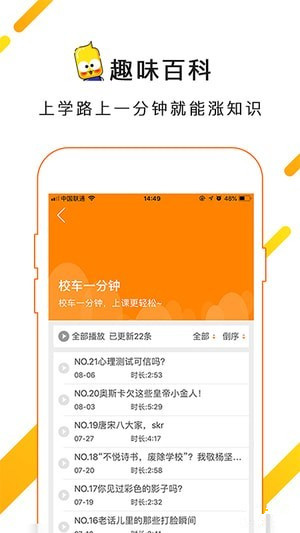 【校车一分钟】深入浅出的趣味音频栏目。上学路上轻松get知识点,完美利用碎片化时间。