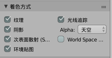 可以相对的取消阴影、纹理、贴图等,主要是用于快速成一个大概的图,只有Blender渲染器包含这个选项,Cycles是物理计算,所有没有这个选项
