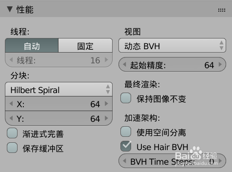 这里可以设置固定的线程来渲染,当你在渲染期间需要用电脑进行其他工作的时候,可以保留1~2个线程出来,分块是指每个线程计算的一小块有多大面积