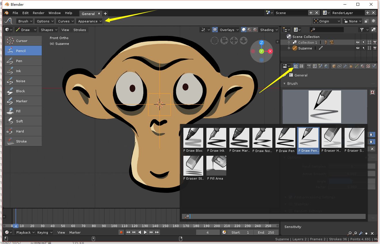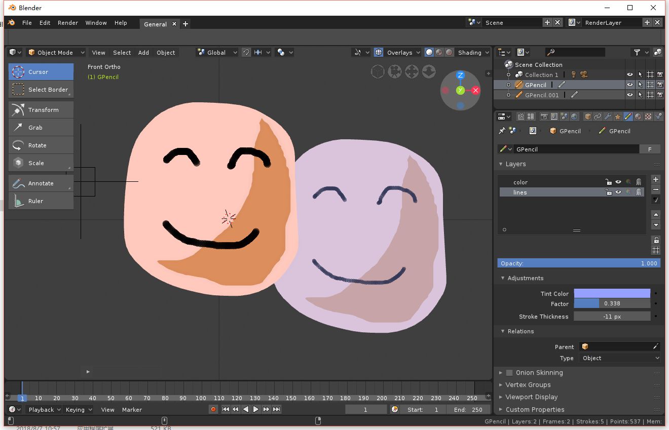 原来的GreasePencil现在改名Annotate,它只作为标记注释类存在,不参与渲染输出,依然是按住D,左键画图,层在N面板里,基本没什么好说的了,因为功能简单。