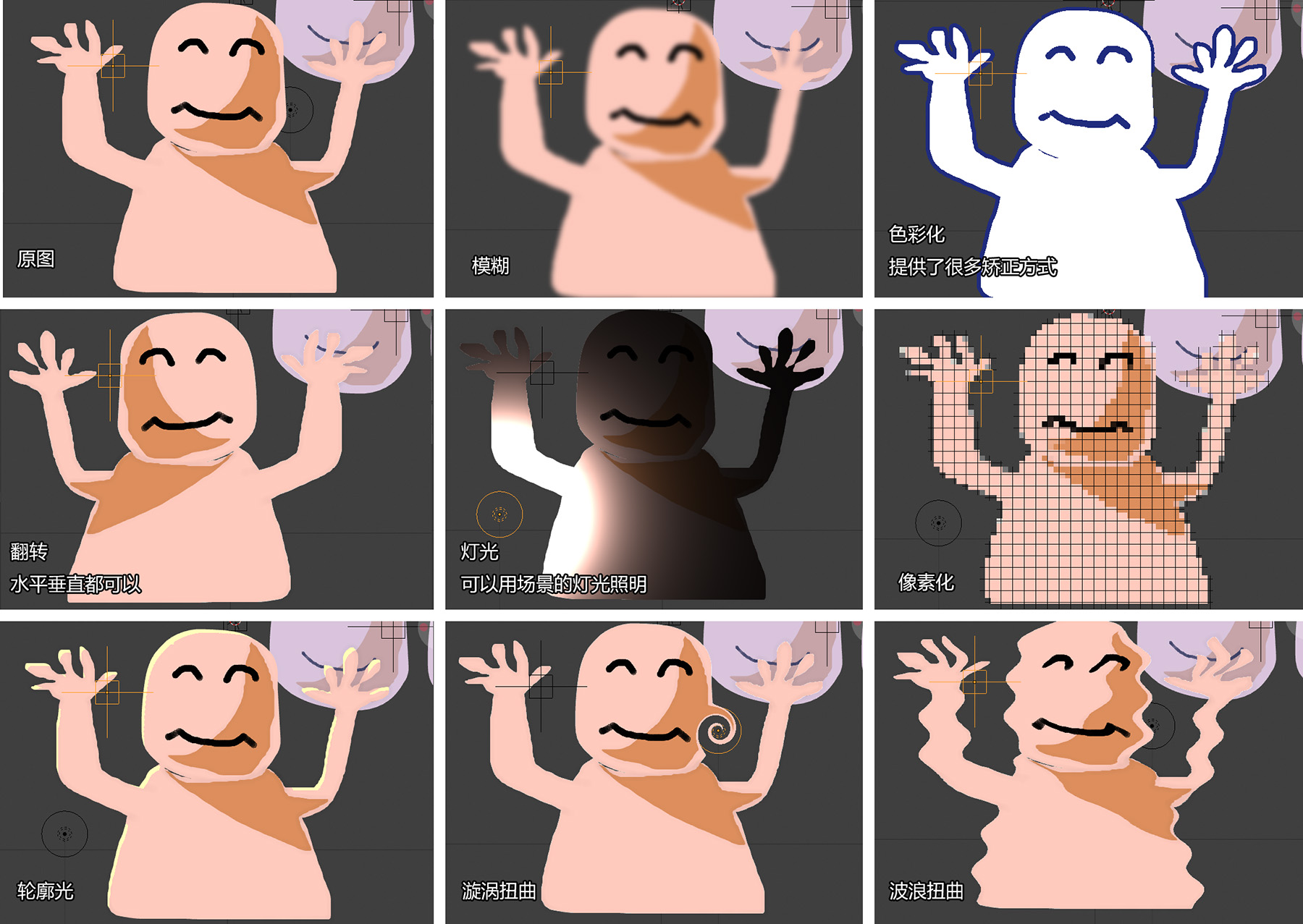 左边的五角星是特效修改器,暂时有八个,看看效果吧。