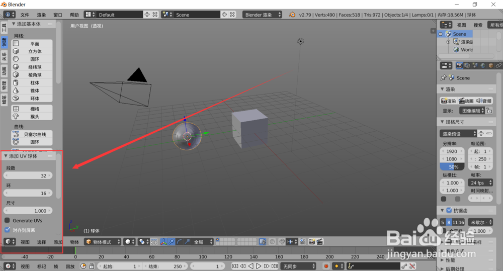 当创建一个新物体的时候,3D视图界面的左下方,可以编辑一些属性,比如球体的段数、环数