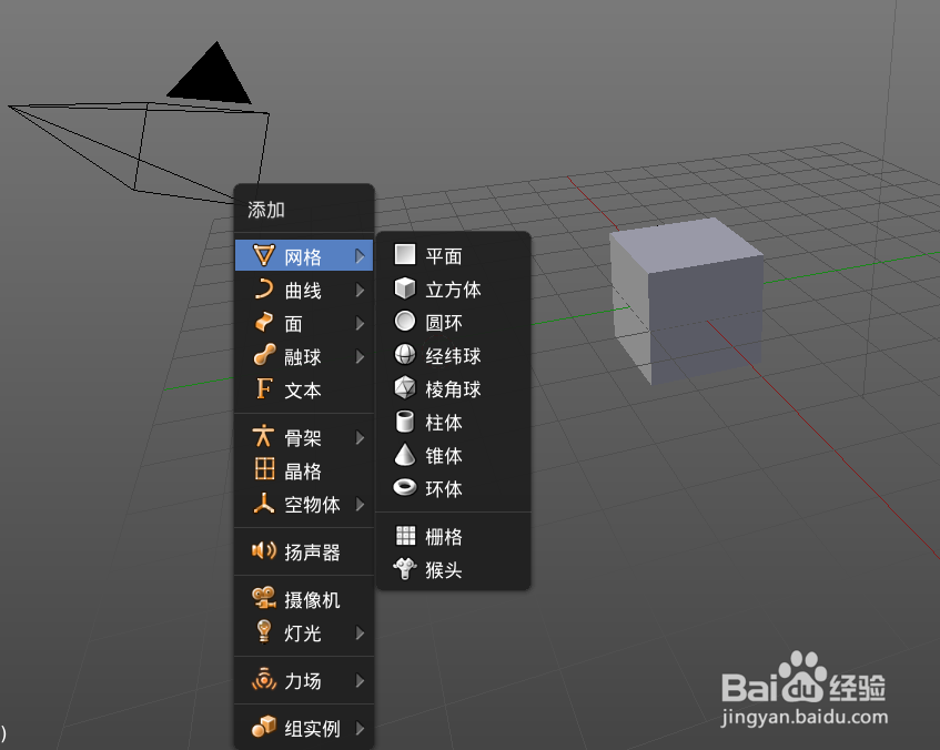 在这些选项中,如果你点击了立方体,那么会在3D游标的位置创建一个立方体,如果点的是球体,那么创建的是球体