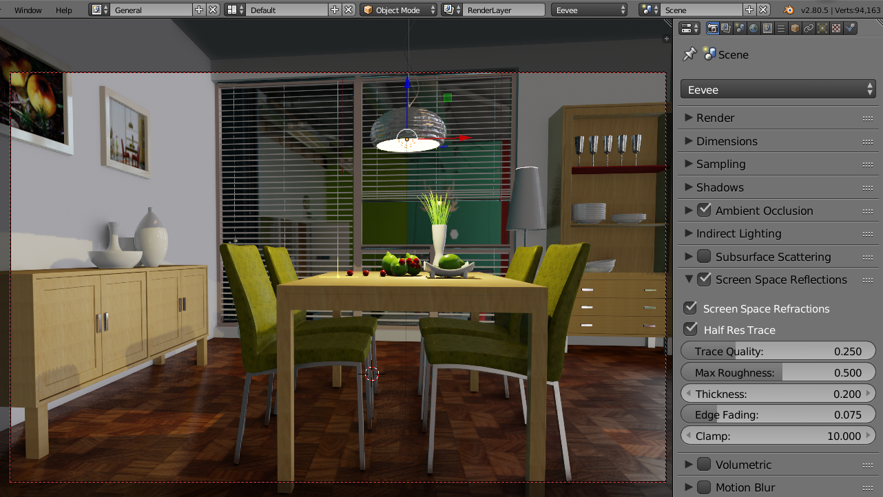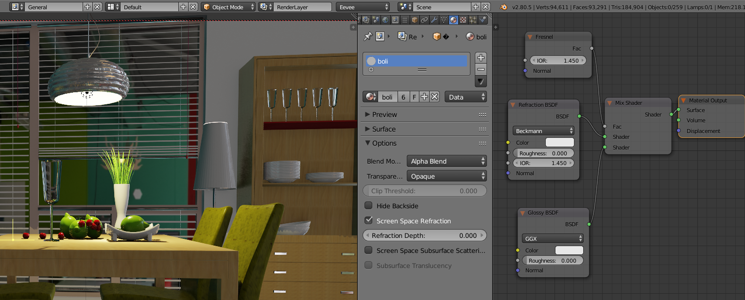 屏幕空间反射渲染下面还有个是折射,建议也打开,现在看右上角的玻璃杯根本不像玻璃,因为材质没有调整