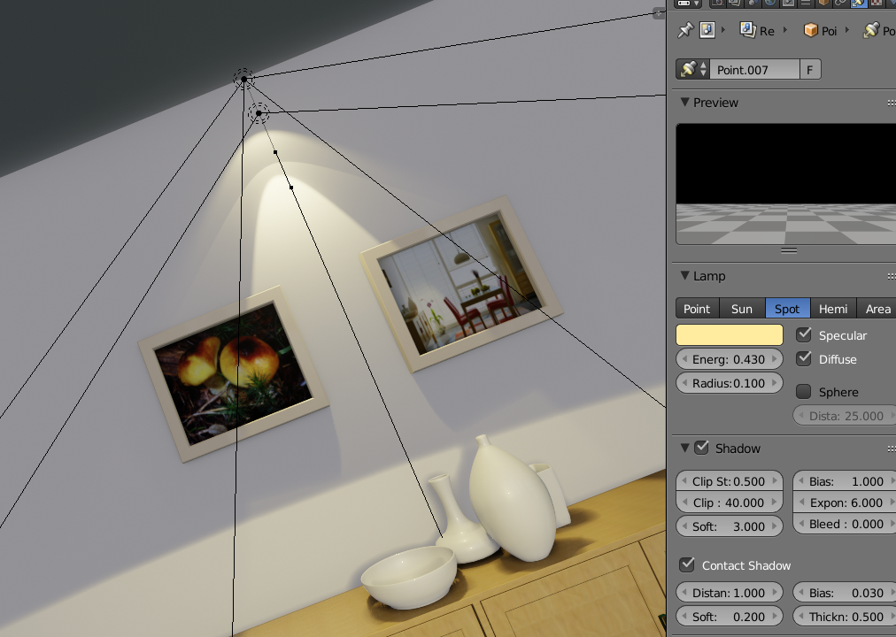 距离和影响值根据场景的不同设置也不同,这样让物体之间有了触碰感,也有了份量一些