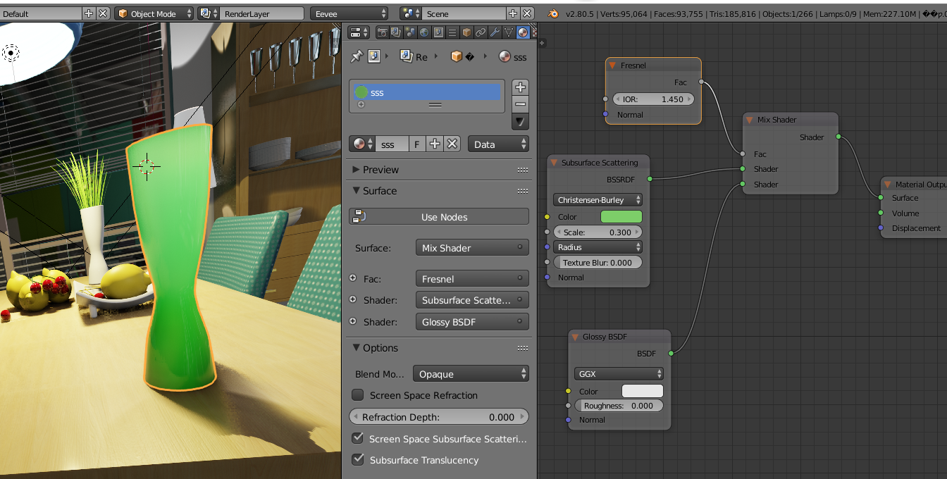 Subsurface Translucency可以让物体更通透。screen SSS仅仅是颜色看起来模糊,比较表面化。
