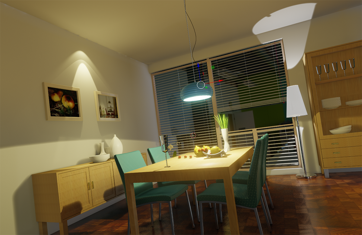 注意看,和上图的对比,尤其的是地板,陶瓷,玻璃杯啥的具有反射性质的物体