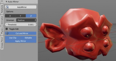 在选择的轴向上自动添加镜像修改器,并可进入编辑模式编辑