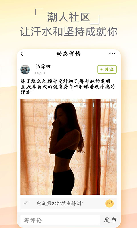 【健身打卡】多名健身达人和业内专家人士根据自身经验,设计出适合不同人群的锻炼方案;【量身订制】根据个人不同体质、用户场景、健身目的、有无器械等情况,打造专属你的健身方案;