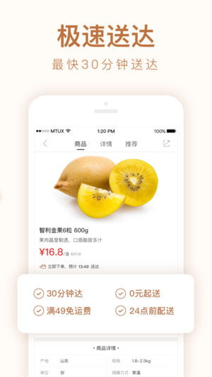 1、配送订单实时查看,关注你的商品动态。2、热销排行推送,向你推荐大家都爱的生鲜水果等。