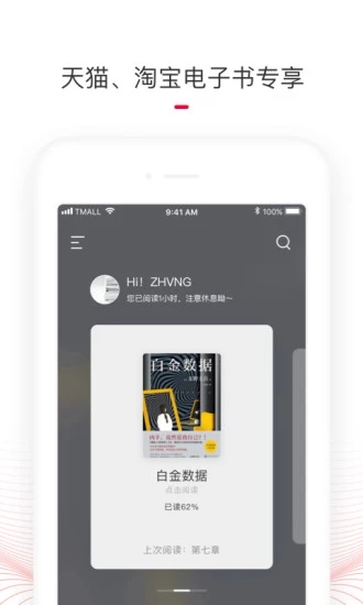 天猫读书手机版是一款小说阅读类软件,天猫读书app为用户提供了大量的小说资源以及各类的电子图书,让用户在平台上既可以看小说,又可以看图书。同时用户还可以将自己喜欢的书籍加入书架上面,这样可以方便用户下一次观看,还可以直接从上一次看到的章节继续观看。