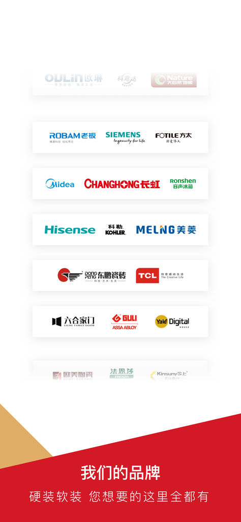 自成立以来,智选优家已先后与老板、方太、法恩莎、东鹏瓷砖等国内上百个优质品牌供应商合作,推出了厨房卫浴、生活电器、墙地面装饰、开关插座、大家电、门窗五金等多个品类。在品质把控方面,严苛甄选品牌供应商,不是优质品牌不要;严格确立成本定价体系,必须是厂家规模集采价格,在成本上缺乏优势的不要,确保大牌品质工厂价格,将高质优价进行到底!